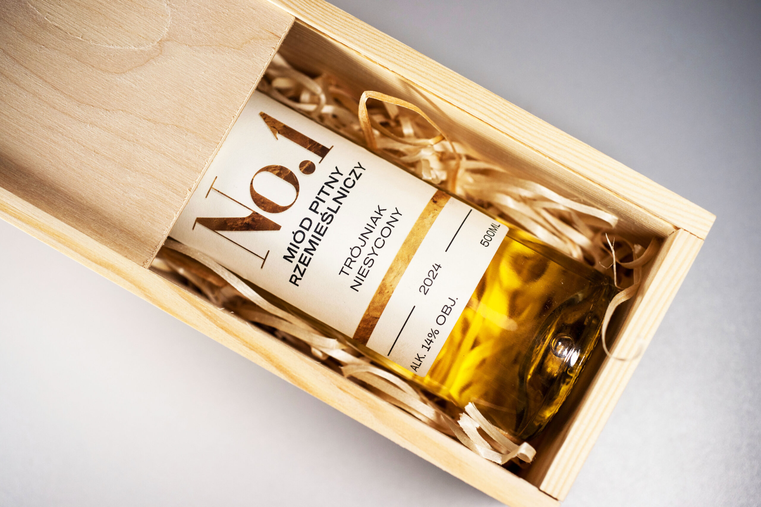 No.1 to wyjątkowy półsłodki miód pitny – trójniak niesycony rzemieślniczy – który wyróżnia się jasnozłotym kolorem i idealną klarownością. Jego aromat intensywnie przywodzi na myśl miód i kwiaty, tworząc zapowiedź złożonych doznań smakowych.