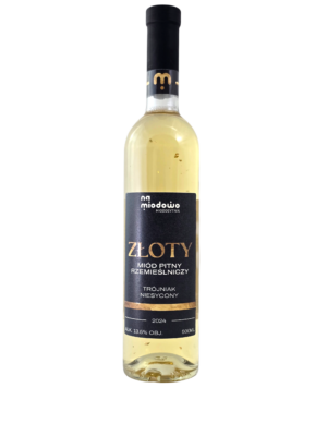 Złoty to trójniak rzemieślniczy, który olśniewa swoim wyglądem i smakiem. Jego krystaliczna klarowność oraz płatki jadalnego złota tworzą efekt wizualny godny wyjątkowych okazji. Kolor – jasne złoto – w pełni oddaje nazwę tego miodu pitnego. Spokojny charakter podkreśla elegancję trunku.